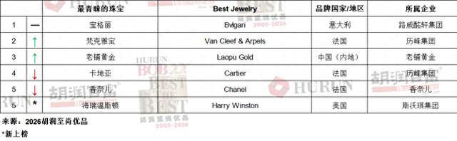 中国品牌新突破 老铺黄金进入胡润榜“最青睐的珠宝”前三名